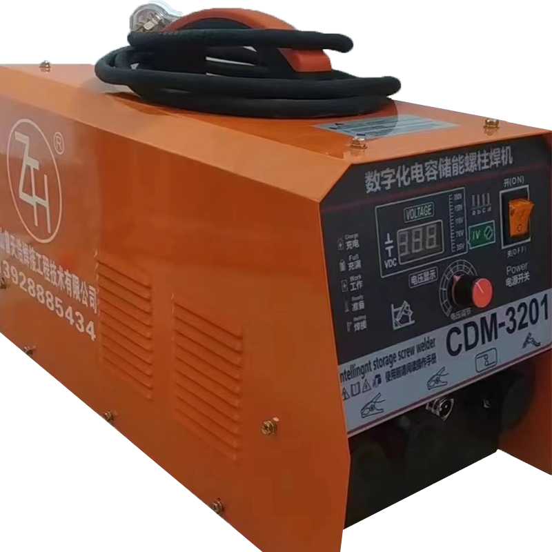 儲能式螺柱焊機可將螺柱、內螺紋螺柱、銷釘等類似的元件焊于金屬工件上。在焊接過程中,通過元件尖端放電使儲能電容放電,放電時間0.001-0.003秒,不需要氣體或陶瓷環(huán)保護,熔深約0.1MM。